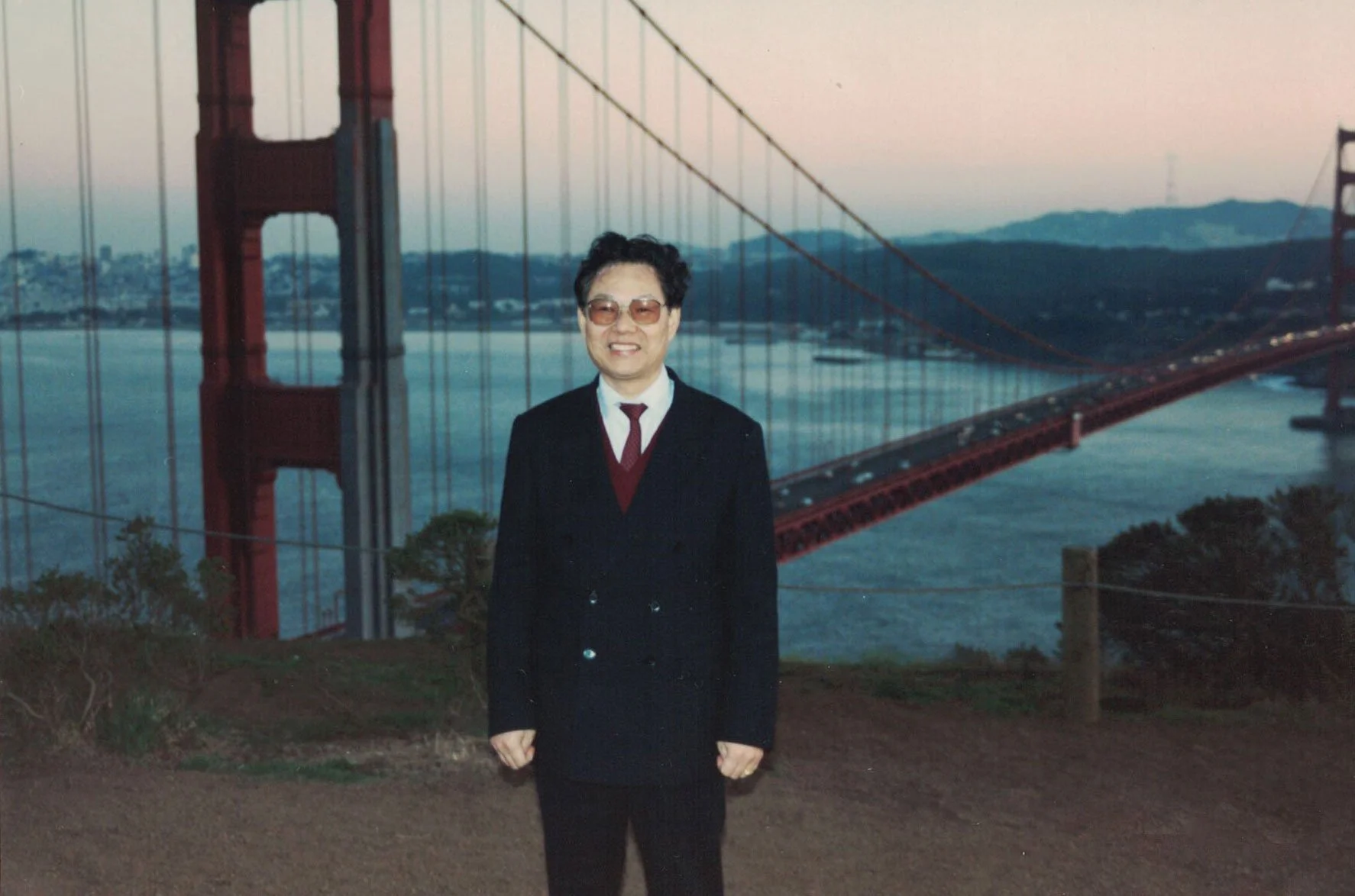 Dr. Zhu Mingqing in front of the Golden Gate Bridge